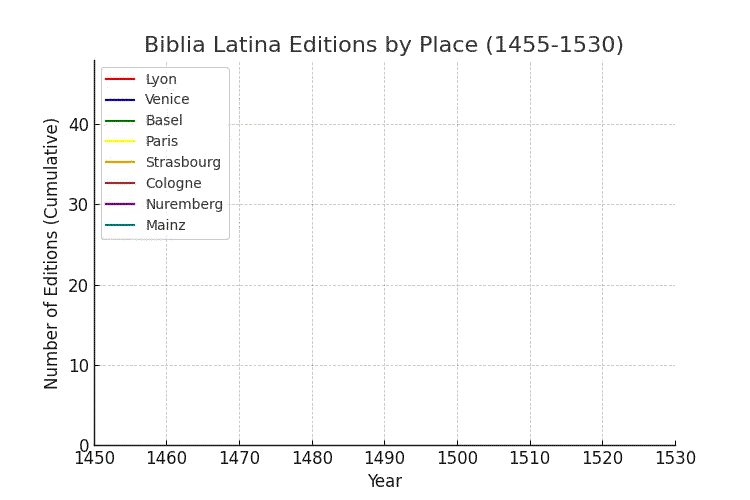 This bibliography includes only complete bibles printed in Latin. It does not include separately printed New Testaments (not even Erasmus), psalters, summaries, abridged bibles, parts of bibles, paupers’ bibles (biblia pauperem), or other similar works. Please note that Bod-Inc refers to the holdings in the Bodleian Library at Oxford University. D&M refers to the Historical Catalogue of the Printed Editions of Holy Scripture in the Library of the British and Foreign Bible Society compiled by T.H. Darlow and H.F. Moule (volume II/2: Polyglots and Languages other than English: Grebo to Opa).