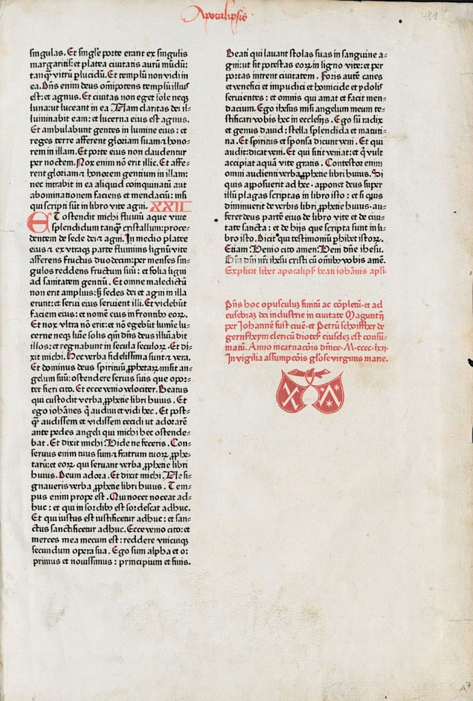 Colophon, Biblia Latina, Johann Fust and Peter Schoeffer, 1462