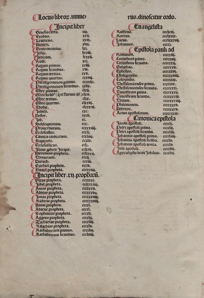 Table of contents, Biblia Latina, Anton Koberger, 1478