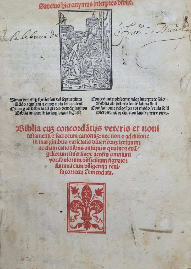 Giunta’s 1519 Latin Bible, title page (left) and Creation woodcut (right).